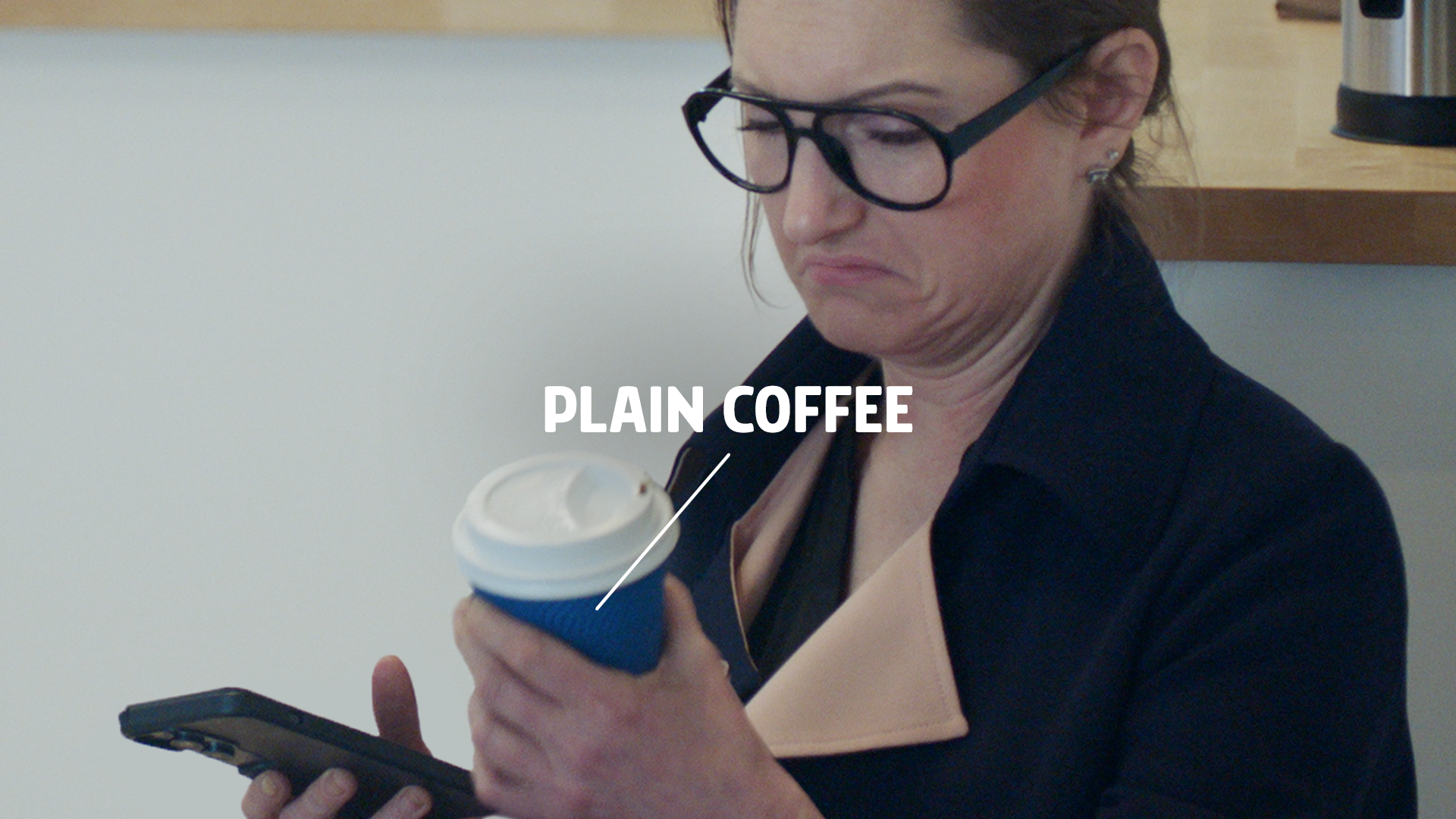 We built an entire coffee shop and introduced it as "simply coffee." The set was complete with multiple hidden cameras, a control room in the back, and two baristas. We added a few surprises too, like black coffee in the creamer carafes and coffee beans in the sugar packets.